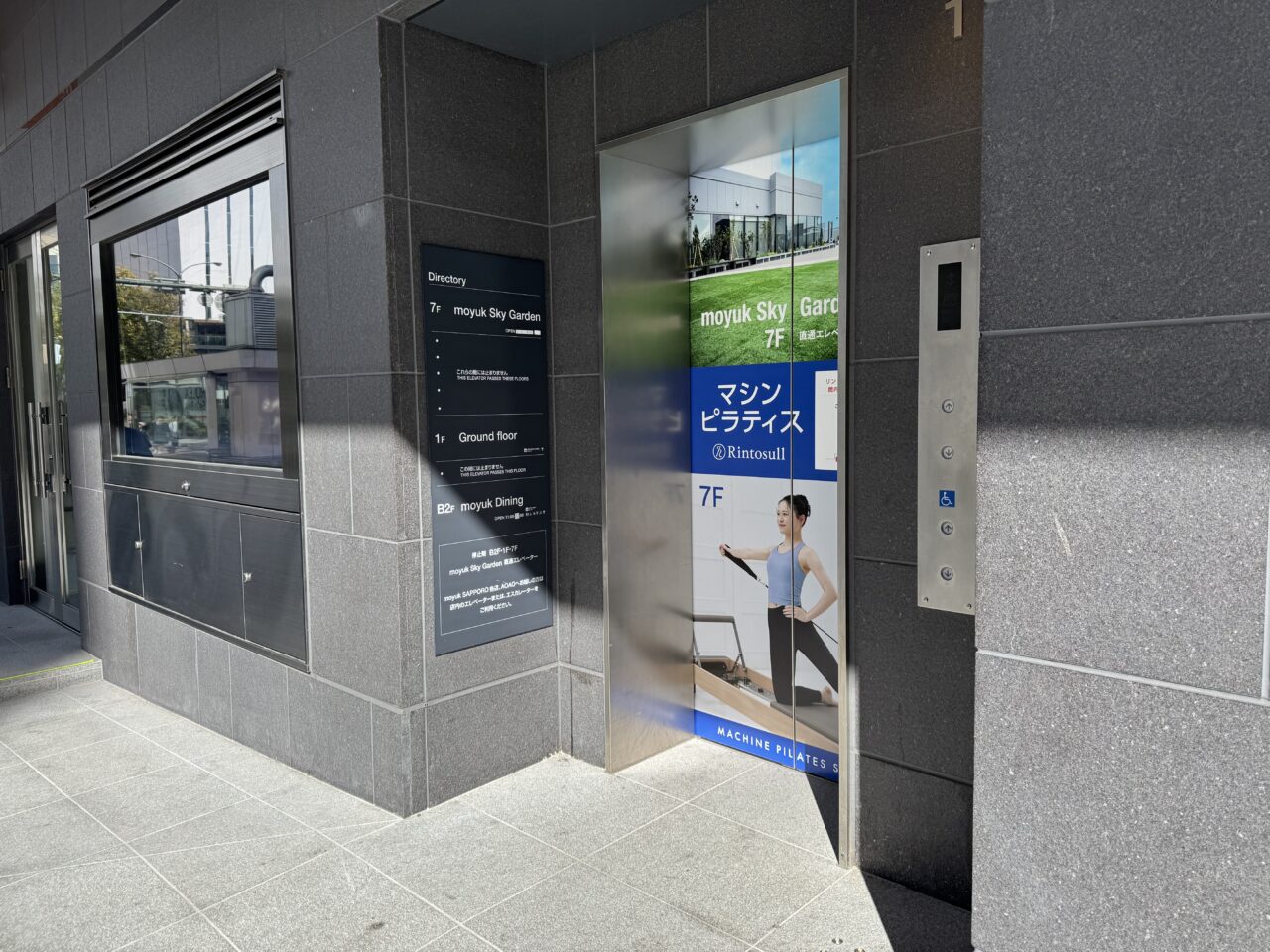2023年に中央区に誕生した「moyukSAPPORO (モユクサッポロ)」の7階に位置する「モユクスカイガーデン」。こちらの1階のエレベーターから7階まで直接行く事が出来ますよ。