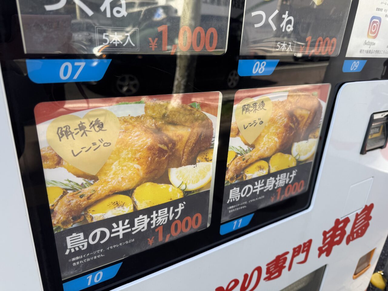 店舗の味をそのまま自宅でも楽しめるこの自販機は、冷凍パックされた焼き鳥やおつまみ商品などを24時間いつでも購入できるのが魅力です。