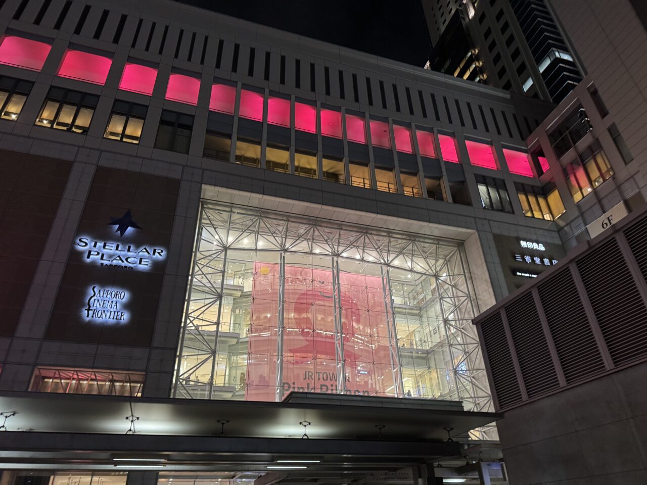 10月は「乳がん啓発月間(ピンクリボン月間)」として全国各地で関連イベントが行われており、札幌市中央区のJRタワーでもこの活動を応援するライトアップが実施中ですよ。