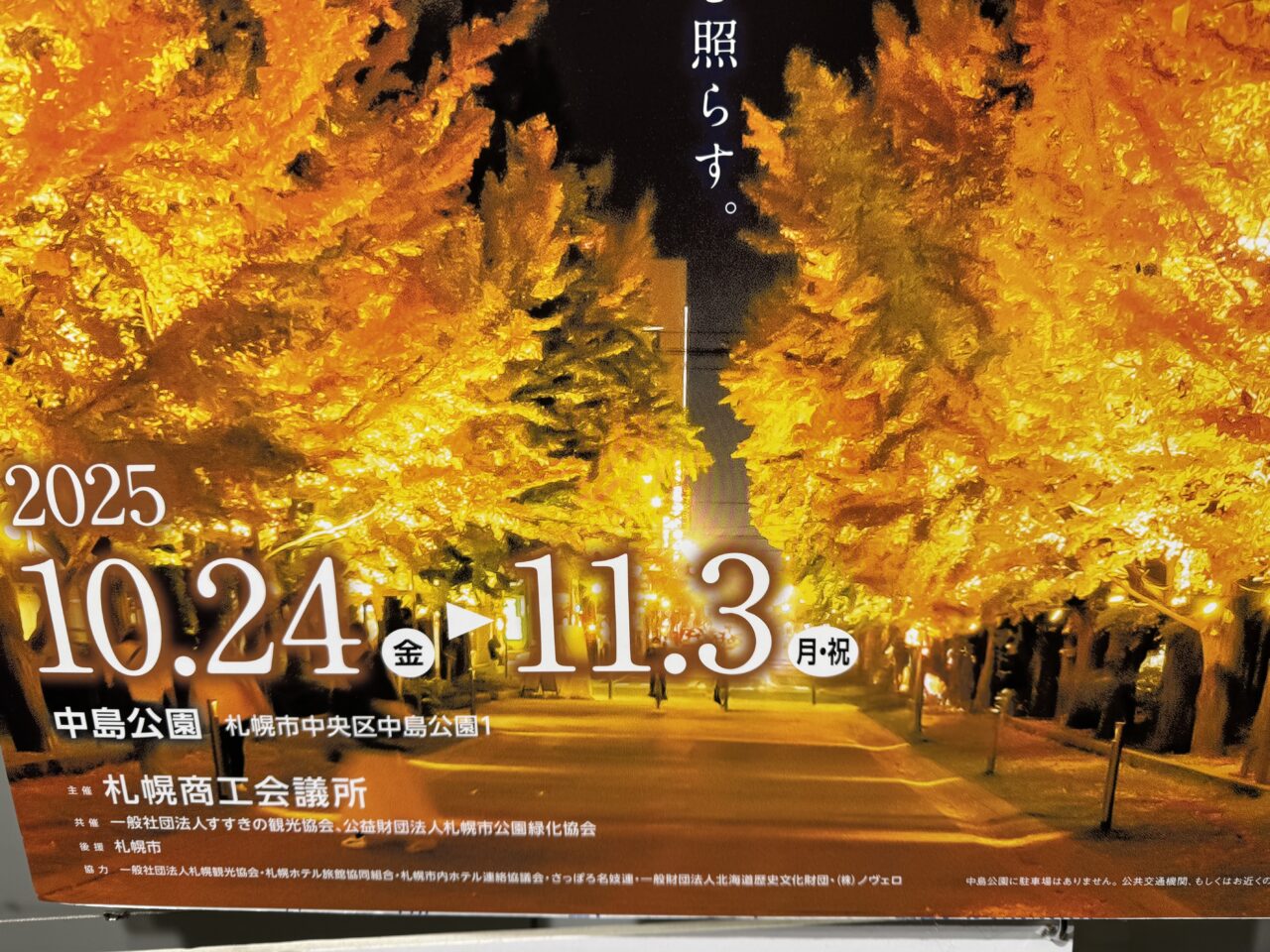 中島公園ではカエデやイチョウの紅葉が見頃を迎えています。中島公園では2025年10月24日(金)から「中島公園紅葉ライトアップ」が楽しめますよ。