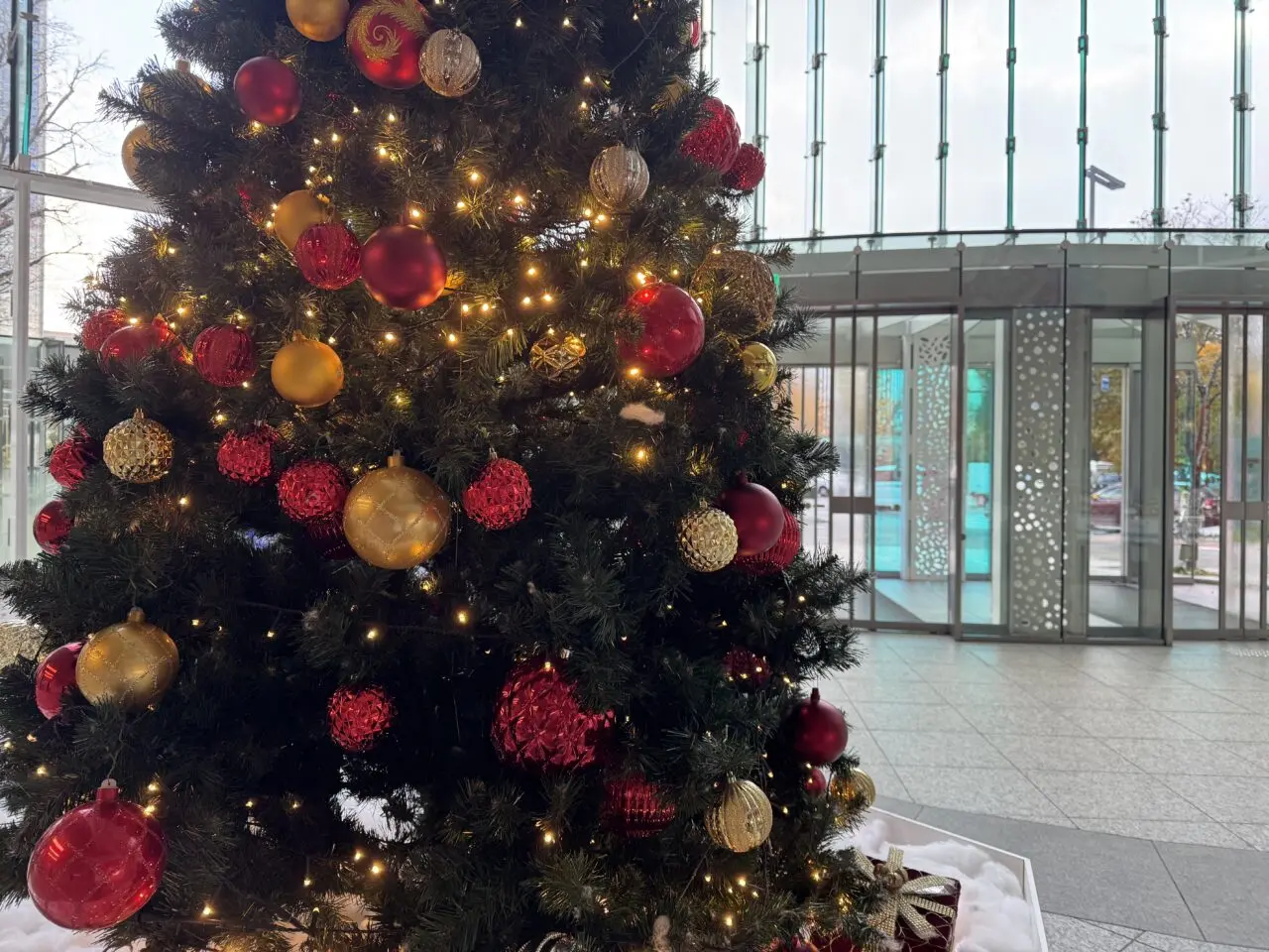 館内1階にはクリスマスツリーも設置され、季節感あふれる華やかな雰囲気に。一層煌びやかに演出されたエントランスは仕事帰りや買い物途中の方々の癒しスポットとなっています。