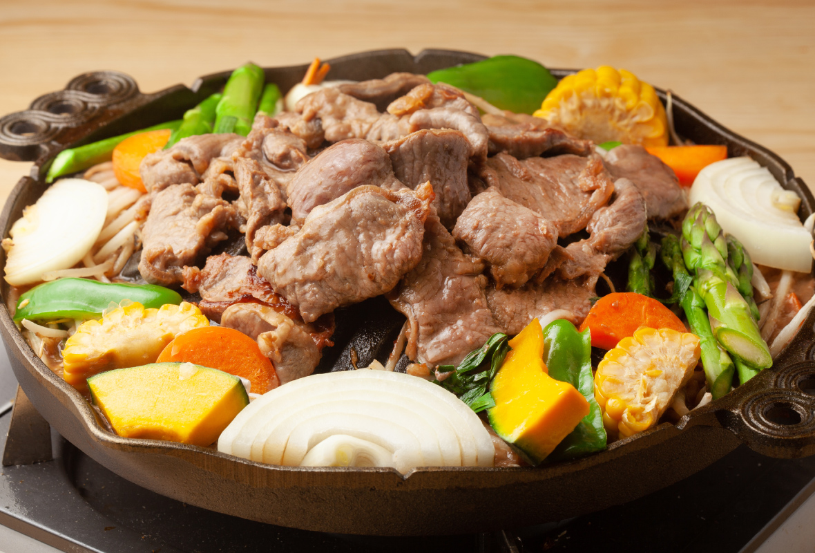 さらに、上質なラム肉を使用したジンギスカンや、シェフが目の前で焼き上げるライブ感あふれるステーキなど、肉料理も充実。海鮮とお肉の両方を存分に楽しめる構成となっています。