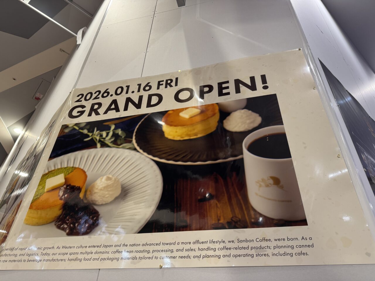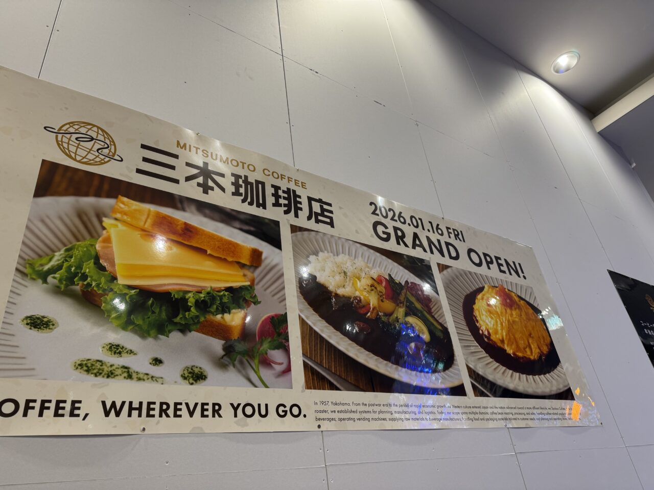 オープン日は2026年1月16日(金)。お買物の合間に、お仕事の休憩に、本格コーヒーとお食事を楽しめるお店になりそうです。モーニングサービスもあるとイオンのホームページに記載されているので、通勤・通学前などにも利用出来ますね。