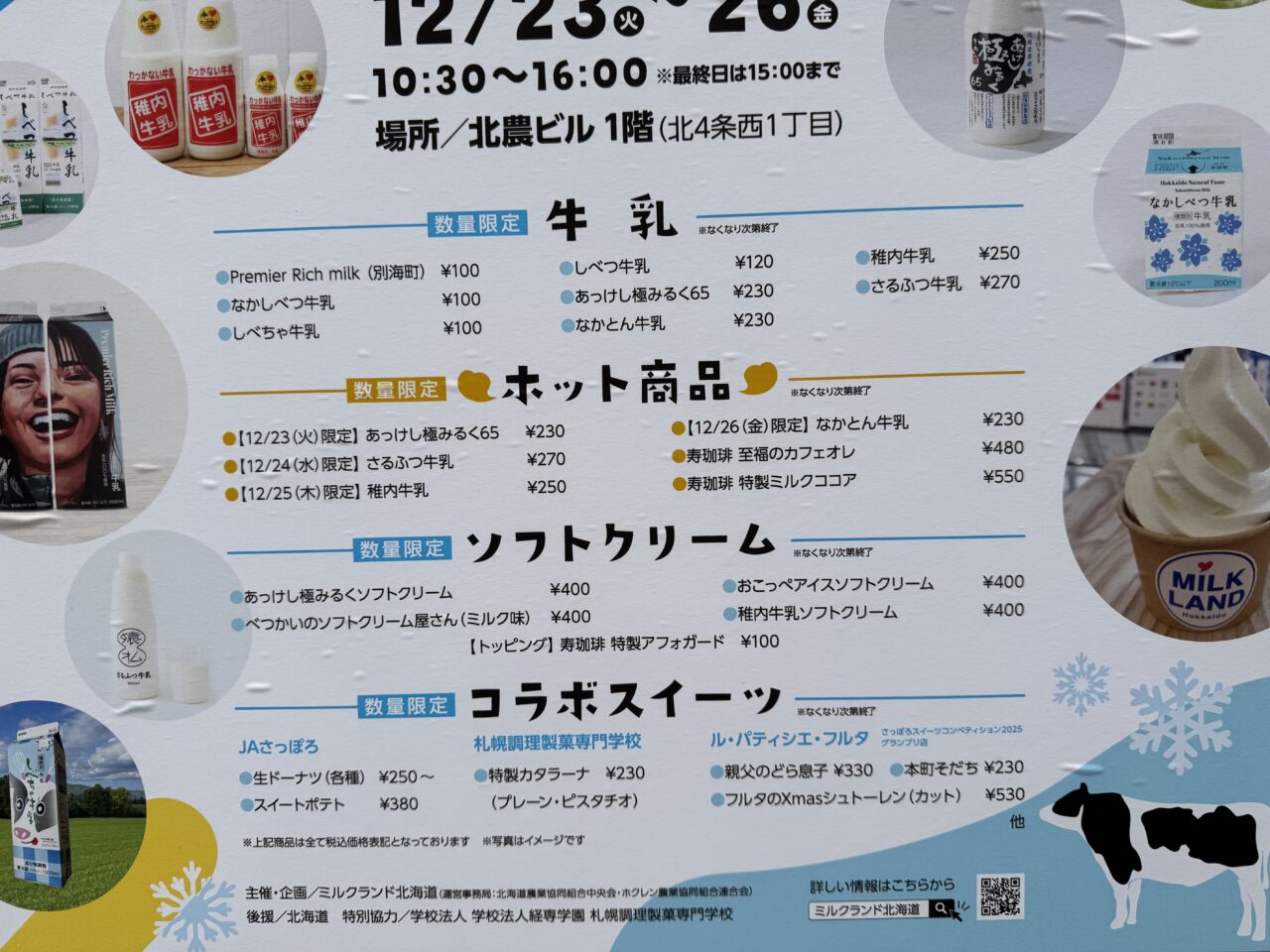 北海道産牛乳の美味しさと魅力を存分に楽しめる期間限定イベント「MILKLAND Hokkaido STAND」が、2025年12月23日(火)から26日(金)までの4日間、札幌市中央区の北農ビル1階ロビーにて開催中です。