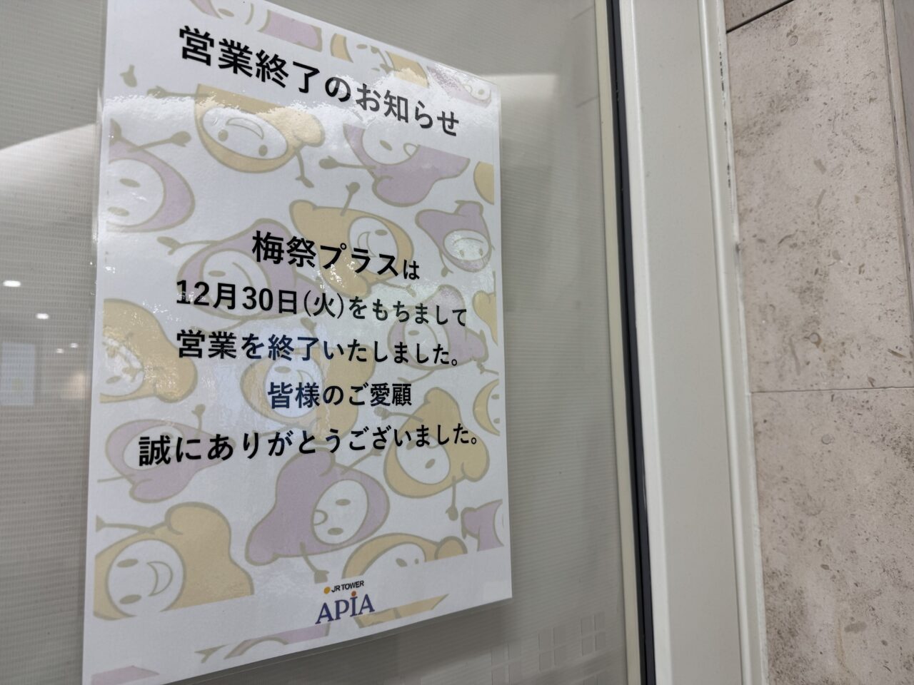 札幌駅直結のアピア・ファッションウォーク内に出店していた、梅干し専門店「梅祭(UMESAI)プラス」が、2025年12月30日に閉店していました。