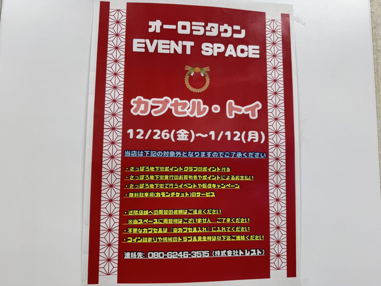 設置期間は2026年1月12日(月)までの期間限定。冬の札幌らしさを感じられるシマエナガのカプセルトイは、お土産やちょっとしたプレゼントにもおすすめです。