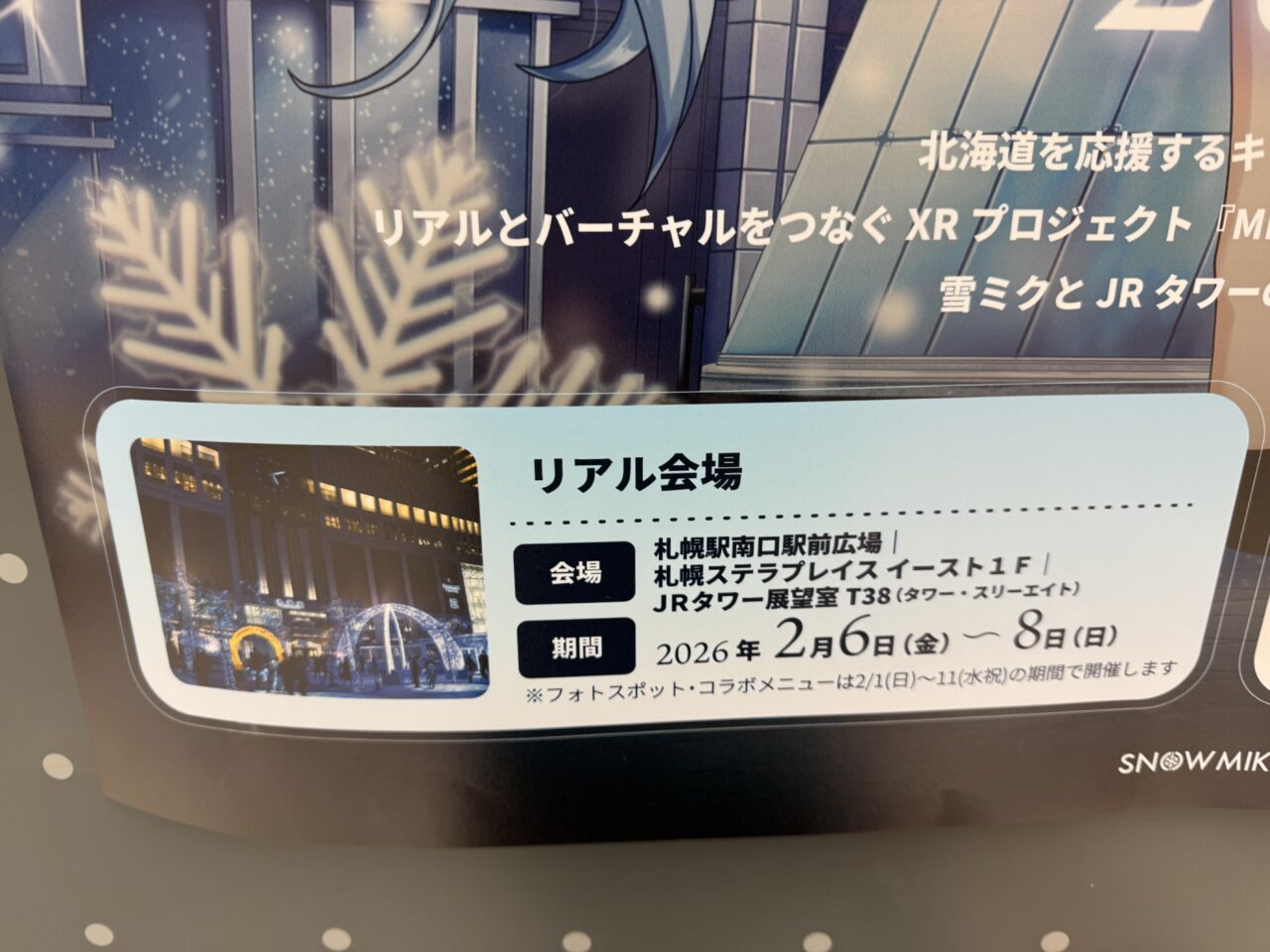 さらに、バーチャル会場では「さつえき.world(VRChat)」などのプラットフォームを通じて、VR空間で雪ミクとの特別なひとときを体験できます。(2026年2月1日~15日)