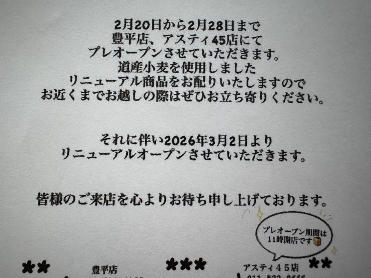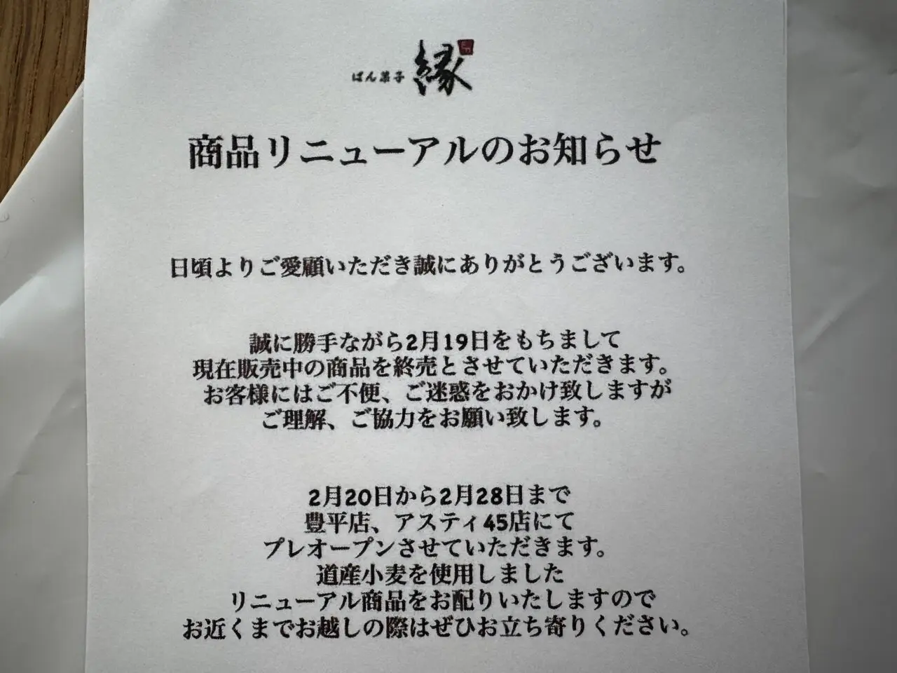札幌駅前のオフィスビル、「アスティ45」に店舗を構えるパン菓子「縁」が、2026年3月2日よりリニューアルオープンしますよ。豊平店もリニューアルオープンするようです。