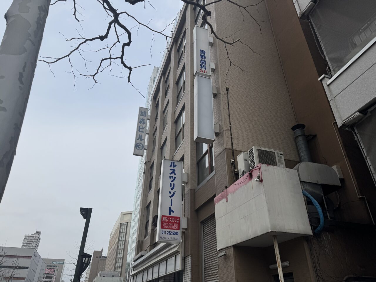 周辺のオフィスワーカーや観光客にとって身近な存在だったローソン。同ビルは、「ルスツリゾート」などを展開する加森観光の本社が入る建物で、昭和のレトロな雰囲気のビルです。