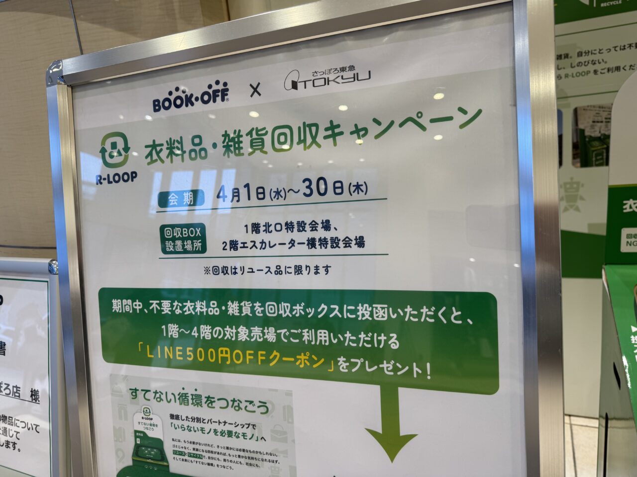 ブックオフコーポレーションとさっぽろ東急百貨店が連携した「R-LOOP 衣料品・雑貨回収キャンペーン」が、2026年4月30日(木)まで開催されています。